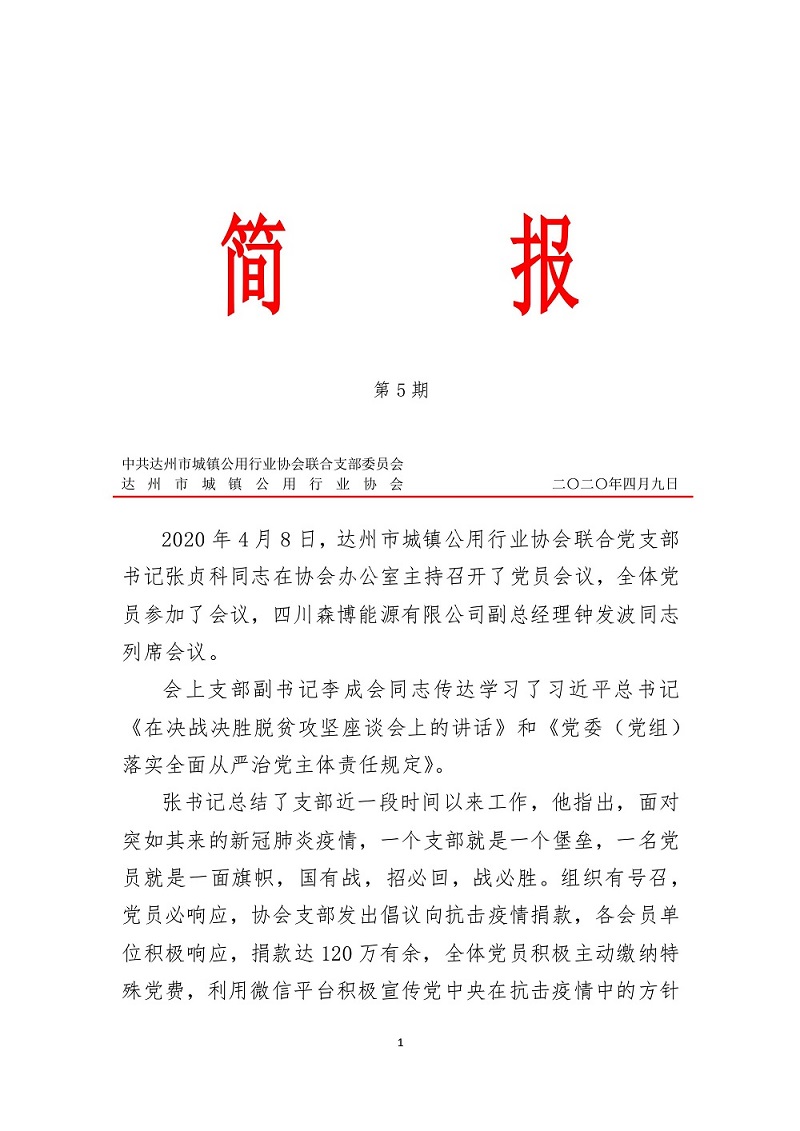 中共達(dá)州市城鎮(zhèn)公用行業(yè)協(xié)會(huì)聯(lián)合支部委員會(huì)2020年第五期簡(jiǎn)報(bào)