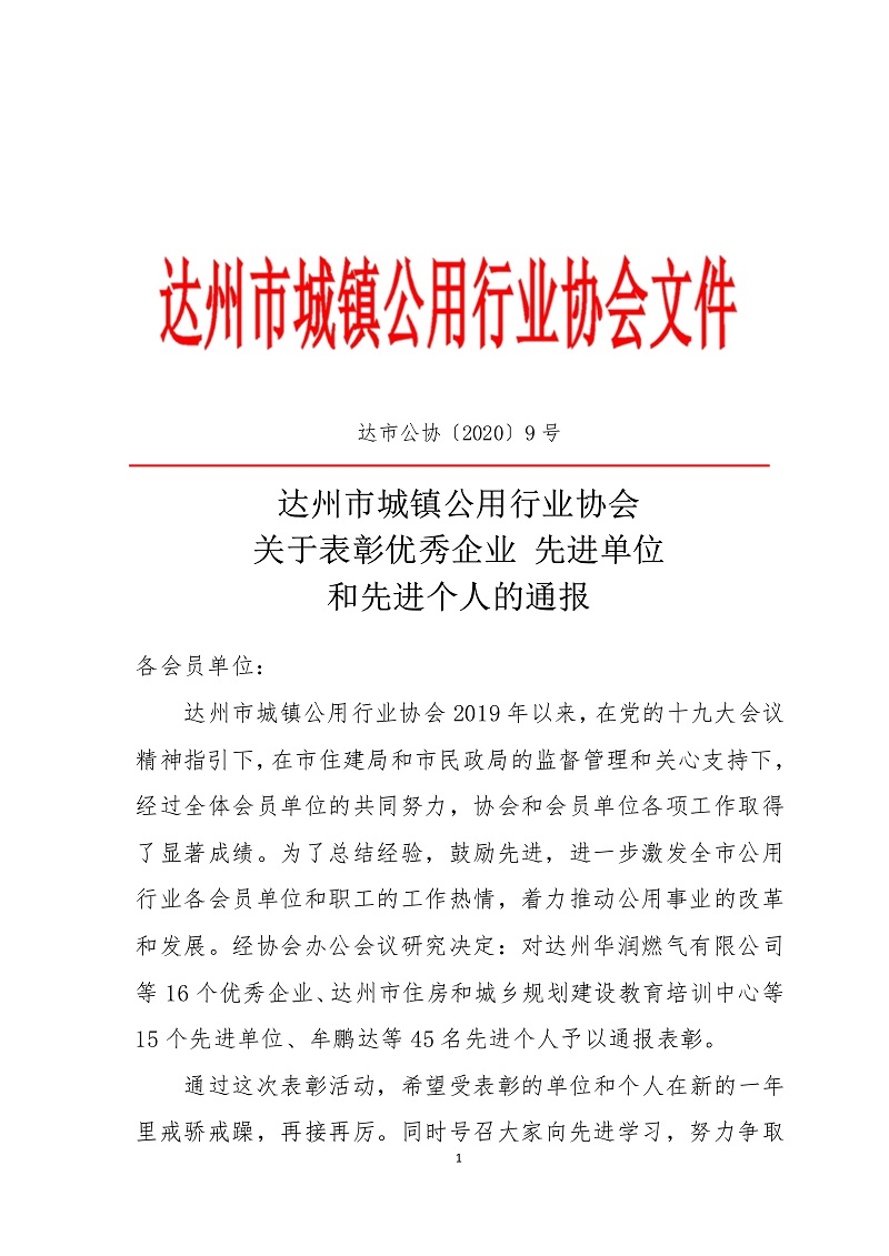 達(dá)州市城鎮(zhèn)公用行業(yè)協(xié)會