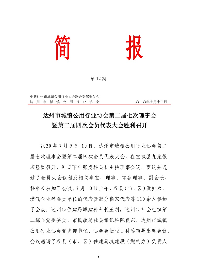中共達(dá)州市城鎮(zhèn)公用行業(yè)協(xié)會(huì)聯(lián)合支部委員會(huì)2020年第十二期簡報(bào)