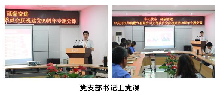 為熱烈慶祝建黨99周年,重溫黨的光輝歷程、謳歌黨的豐功偉績,進(jìn)一步鼓舞廣大黨員干部愛黨愛國熱情、干事創(chuàng)業(yè)激情,開江華潤燃?xì)恻h支部組織開展了慶祝建黨99周年“五個(gè)一”系列活動(dòng),以實(shí)際行動(dòng)為黨的生日獻(xiàn)上一份“忠誠”賀禮。