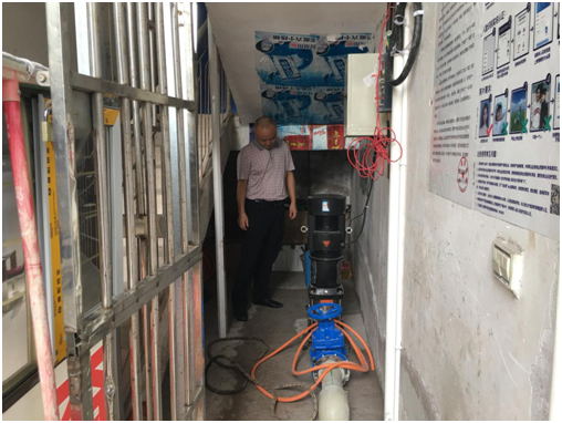 開江縣東方之嬌小區(qū)所處地勢較高,屬于多層建筑,且開發(fā)商在修建時(shí)未裝置二次加壓設(shè)備,導(dǎo)致該小區(qū)10多年來在用水高峰期高樓層水壓低,甚至無法使用熱水器,嚴(yán)重影響居民正常生活。為解決好群眾訴求,開江縣自來水公司在企業(yè)自身?xiàng)l件艱苦的情況下,把群眾利益放在首位,不吝投入,制訂出解決用水困難的方案。