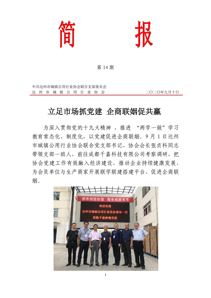 中共達(dá)州市城鎮(zhèn)公用行業(yè)協(xié)會(huì)聯(lián)合支部委員會(huì)2020年第十四期簡(jiǎn)報(bào)