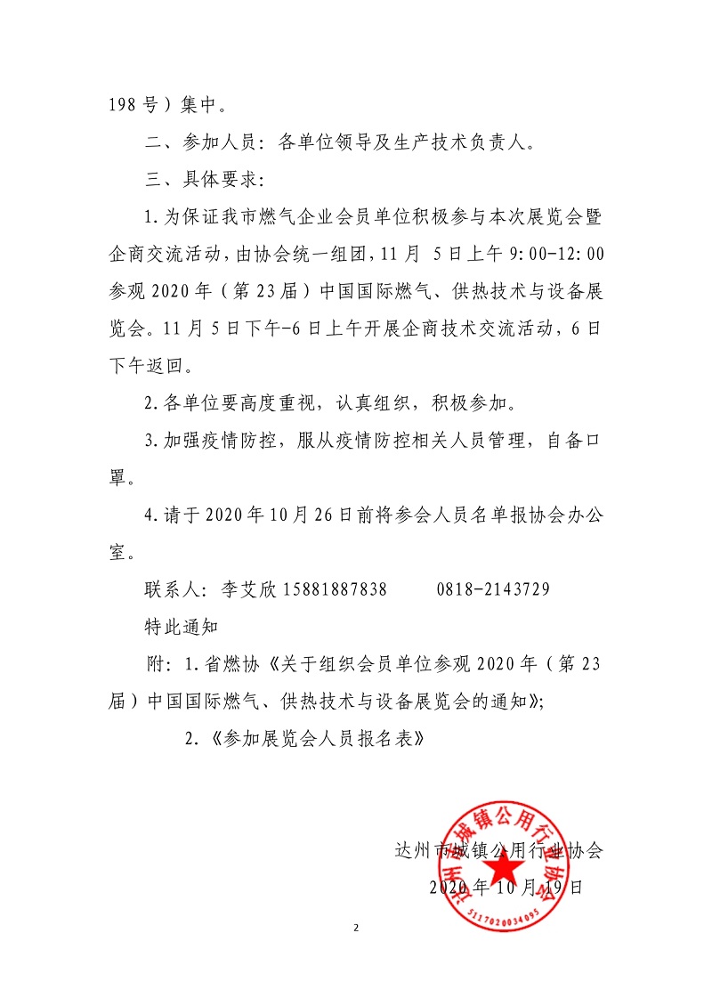關(guān)于參觀2020年(第23屆)中國(guó)國(guó)際燃?xì)、供熱技術(shù)與設(shè)備展覽會(huì)暨企商交流活動(dòng)的通知