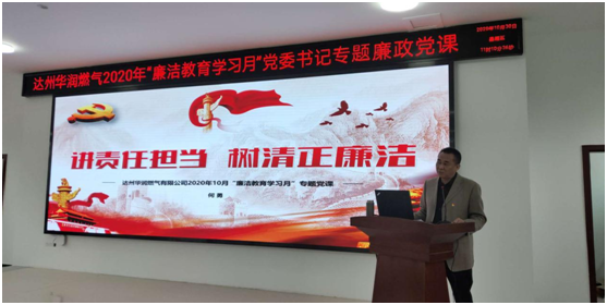 為深入推進(jìn)全面從嚴(yán)治黨,不斷筑牢全體黨員及各級經(jīng)理人廉政從業(yè)意識,10月30日上午,達(dá)州華潤燃?xì)庥邢薰军h委書記、總經(jīng)理何勇作了主題為“講責(zé)任擔(dān)當(dāng) 樹清正廉潔”廉政專題黨課講座。公司中層以上管理人員、黨員及入黨積極分子80余人聆聽了講座。