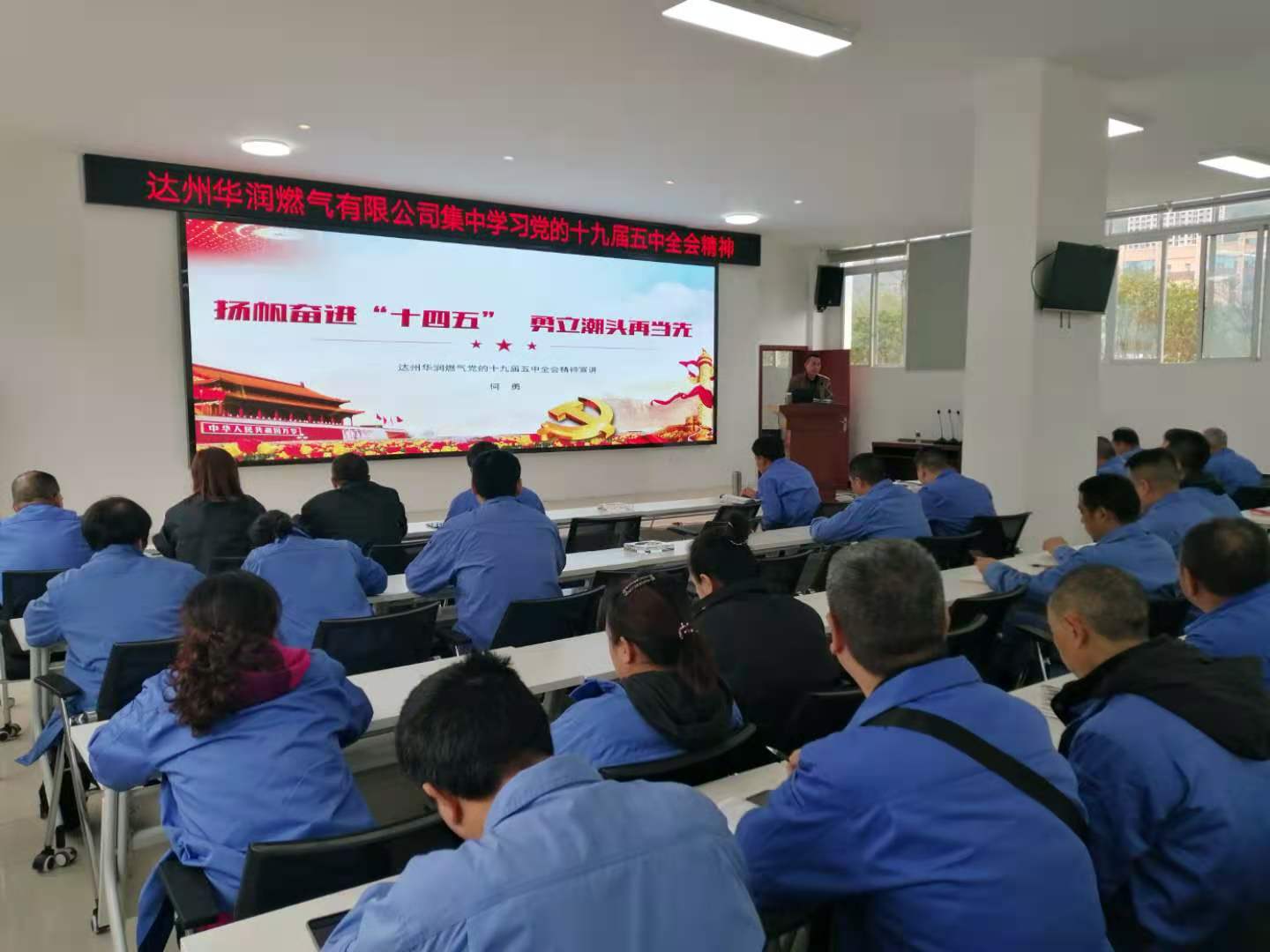 目前,達州華潤燃氣各級黨組織通過多種形式傳達學(xué)習(xí)黨的十九屆五中全會精神,營造濃厚輿論氛圍,在公司掀起了學(xué)習(xí)宣傳貫徹五中全會精神的熱潮。
