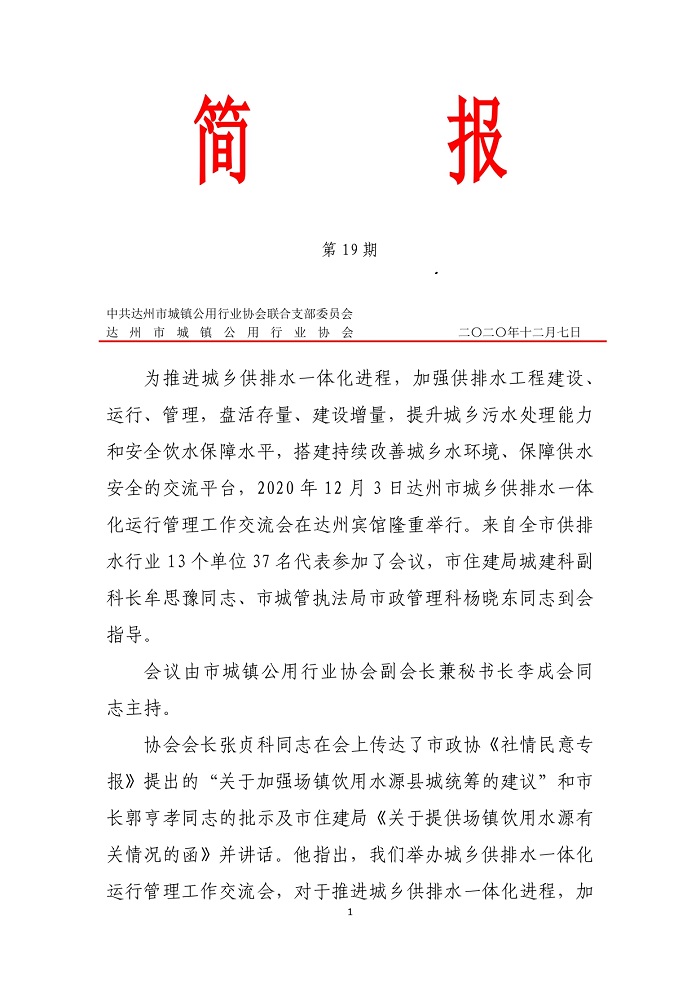達州市城鎮(zhèn)公用行業(yè)協(xié)會2025年第八期簡