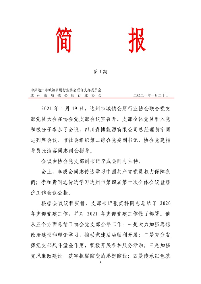 中共達州市城鎮(zhèn)公用行業(yè)協(xié)會聯(lián)合支部委員會2021年第一期簡報