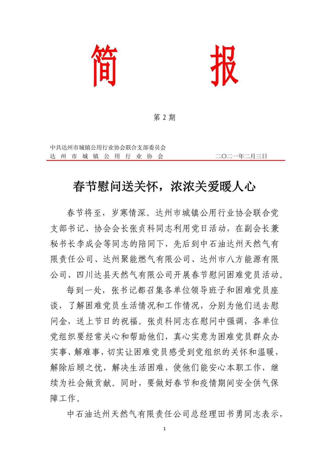 中共達(dá)州市城鎮(zhèn)公用行業(yè)協(xié)會聯(lián)合支部委員會2021年第二期簡報
