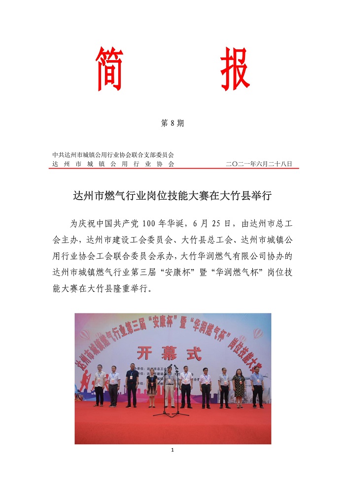 中共達(dá)州市城鎮(zhèn)公用行業(yè)協(xié)會(huì)聯(lián)合支部委員會(huì)2021年第八期簡(jiǎn)報(bào)