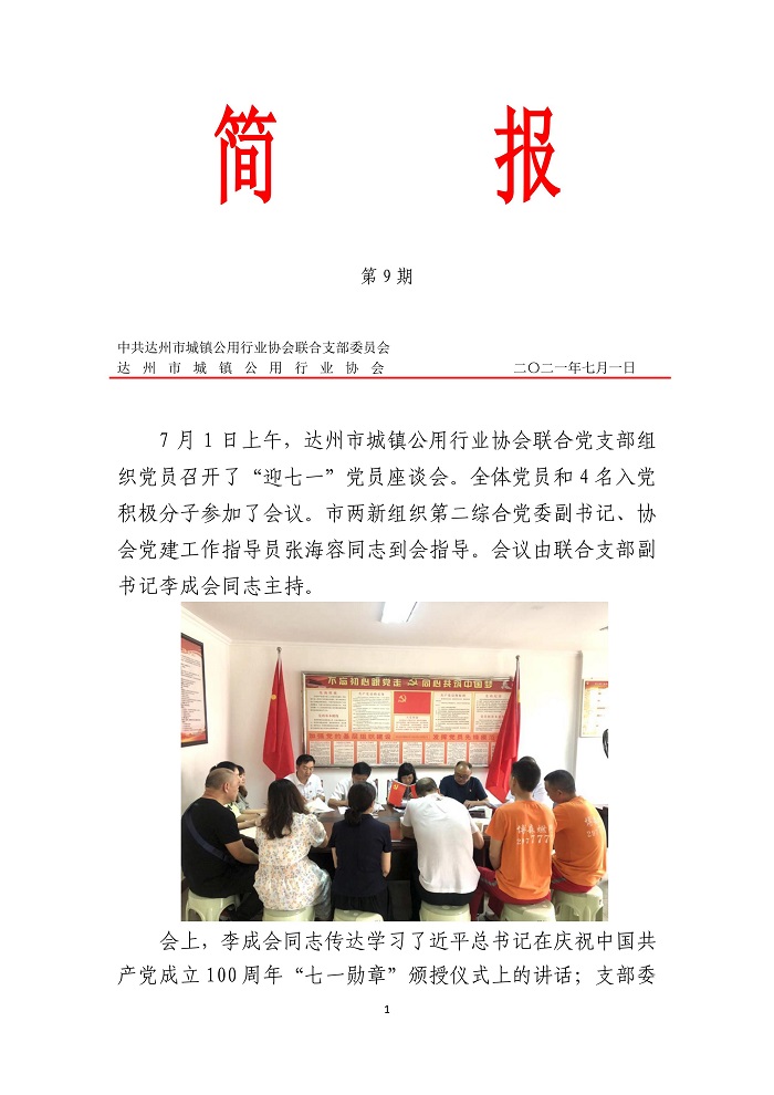 中共達州市城鎮(zhèn)公用行業(yè)協(xié)會聯(lián)合支部委員會2021年第九期簡報