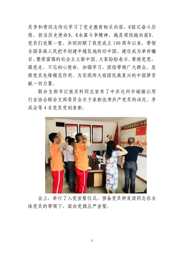 中共達州市城鎮(zhèn)公用行業(yè)協(xié)會聯(lián)合支部委員會2021年第八期簡報