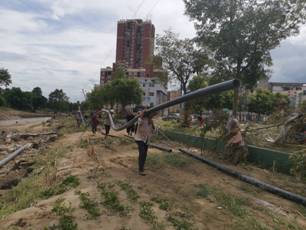 及時(shí)恢復(fù)生產(chǎn),確保供排水安全。一是各水廠根據(jù)災(zāi)后情況及時(shí)調(diào)整制水方案,加大水質(zhì)檢測(cè)頻率,確保供水水質(zhì)安全;二是緊急調(diào)集搶修隊(duì)伍加班加點(diǎn)搶修受損供水管網(wǎng),先后累計(jì)調(diào)集搶修人員200余人、搶修車輛30余輛次、調(diào)運(yùn)各類口徑管道1000余米、各類管件數(shù)百個(gè),截至10日12點(diǎn)所有受損管道全部搶修完畢并恢復(fù)正常供水;三是對(duì)全城重點(diǎn)內(nèi)澇嚴(yán)重地區(qū)排水井進(jìn)行拉網(wǎng)式巡查,清淤保暢、設(shè)置安全警戒圍欄,確保排水及行人安全;四是出動(dòng)30余人次對(duì)城區(qū)部分小區(qū)的二次供水泵房及設(shè)施進(jìn)行檢查,確保二次供水安全。