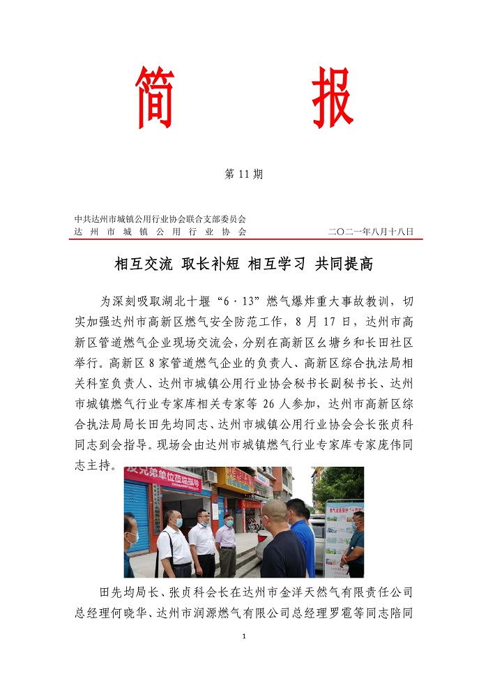 達(dá)州市城鎮(zhèn)公用行業(yè)協(xié)會(huì)2021年第十一期簡(jiǎn)報(bào)