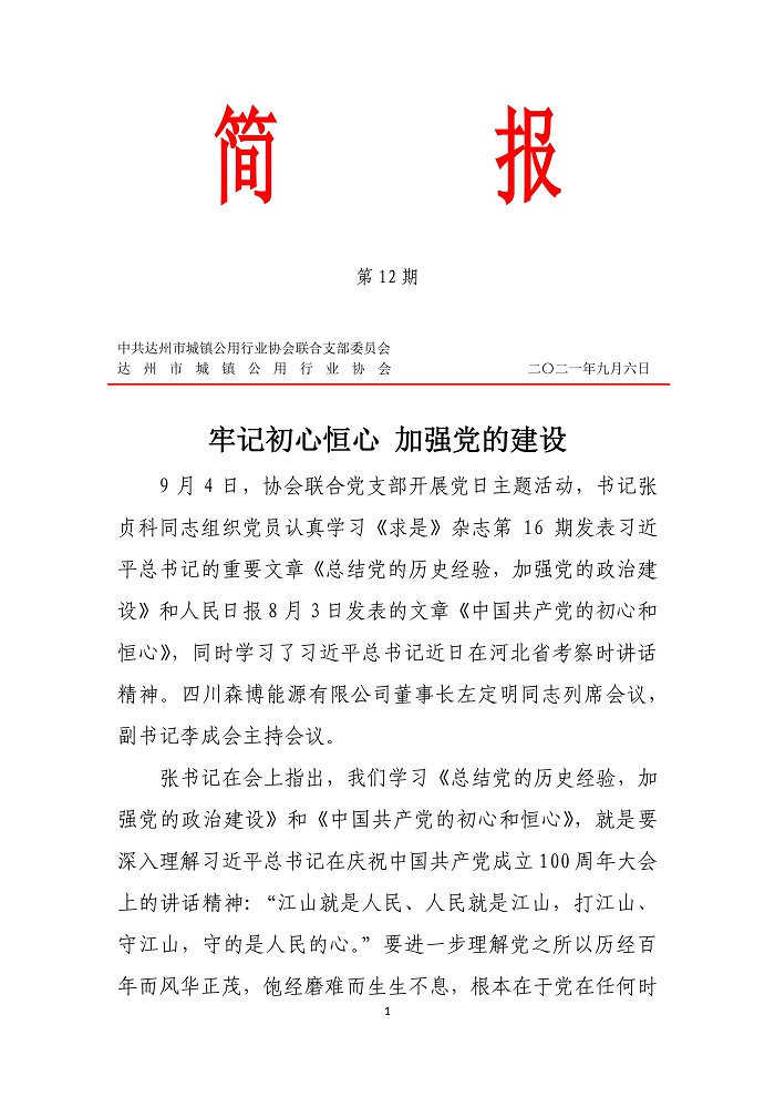 中共達(dá)州市城鎮(zhèn)公用行業(yè)協(xié)會(huì)聯(lián)合支部委員會(huì)2021年第十二期簡(jiǎn)報(bào)