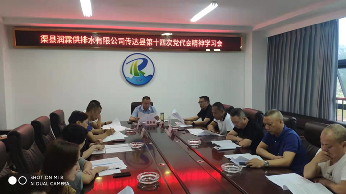 2021年9月15日下午,渠縣第十四次黨代會剛剛勝利閉幕,渠縣潤霖供排水有限公司就組織召開專題學習會,深入學習貫徹黨代會精神。