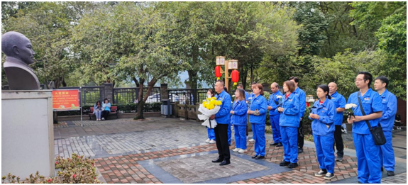 在王維舟銅像前,黨委書記、總經(jīng)理何勇帶隊肅立、默哀鞠躬,全體黨員依次從銅像前走過并敬獻鮮花,表達對革命前輩及廣大紅軍英烈英雄的無限崇敬和緬懷之情。