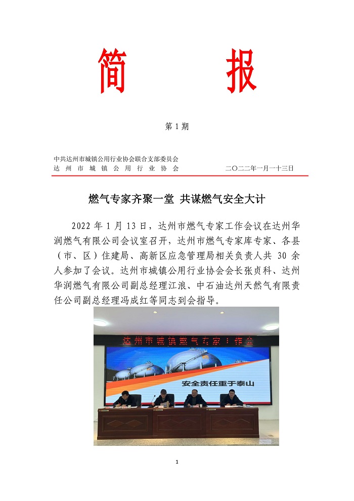 中共達(dá)州市城鎮(zhèn)公用行業(yè)協(xié)會聯(lián)合支部委員會2022年第一期簡報