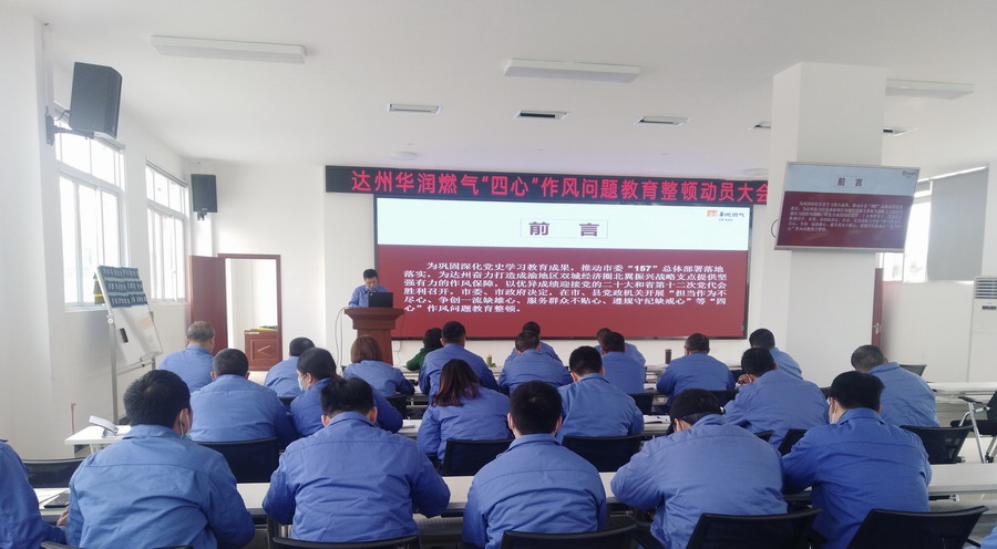 2月11日下午,達州華潤燃氣有限公司召開專題安排部署關(guān)于“四心”作風問題教育整頓工作會。傳達學習全市機關(guān)干部“四心”作風問題教育整頓動員大會精神,安排部署公司“四心”作風問題教育整頓工作。公司班組長以上管理人員80余人參加會議。