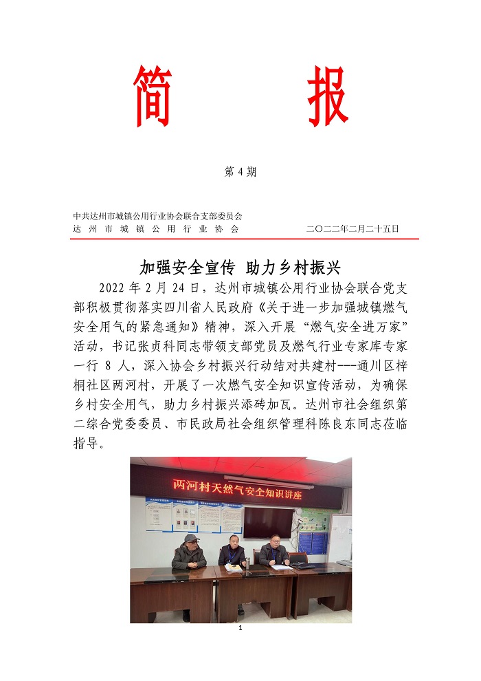 中共達(dá)州市城鎮(zhèn)公用行業(yè)協(xié)會(huì)聯(lián)合支部委員會(huì)2022年第四期簡(jiǎn)報(bào)