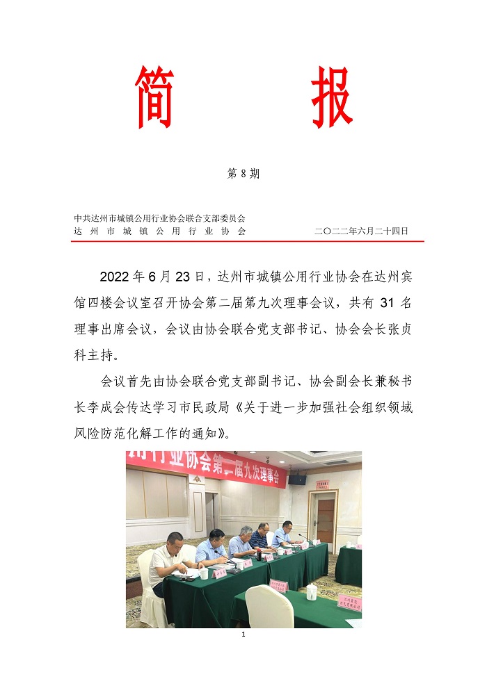 中共達(dá)州市城鎮(zhèn)公用行業(yè)協(xié)會聯(lián)合支部委員會2022年第八期簡報