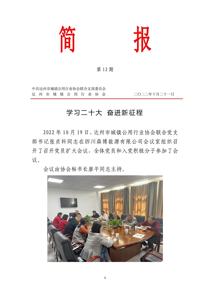 中共達州市城鎮(zhèn)公用行業(yè)協(xié)會聯(lián)合支部委員會2022年第十二期簡報