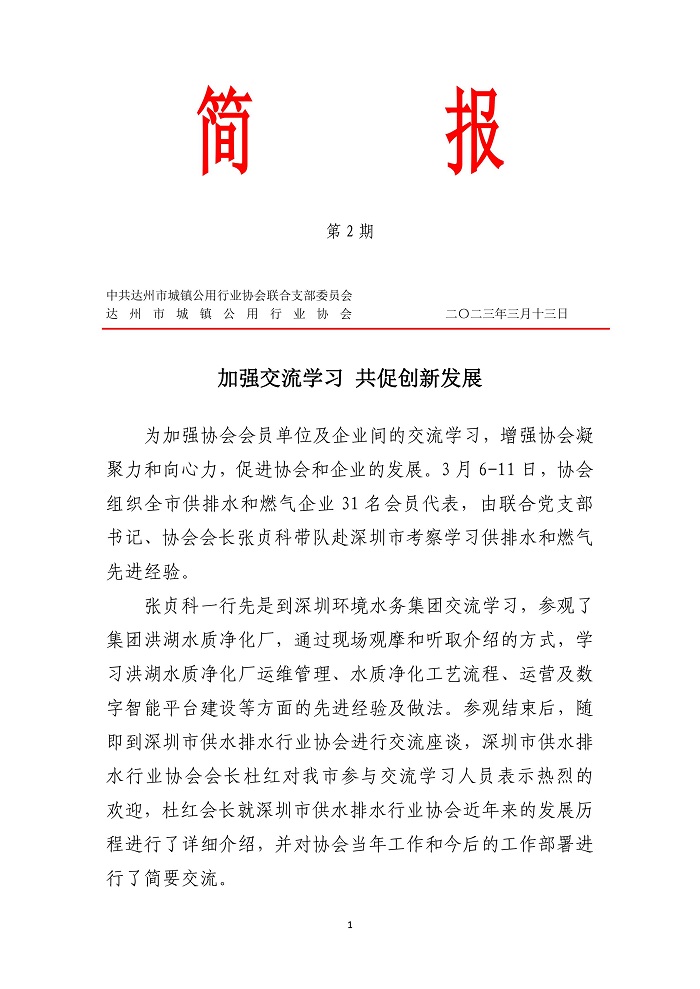 中共達(dá)州市城鎮(zhèn)公用行業(yè)協(xié)會(huì)聯(lián)合支部委員會(huì)2023年第二期簡(jiǎn)報(bào)