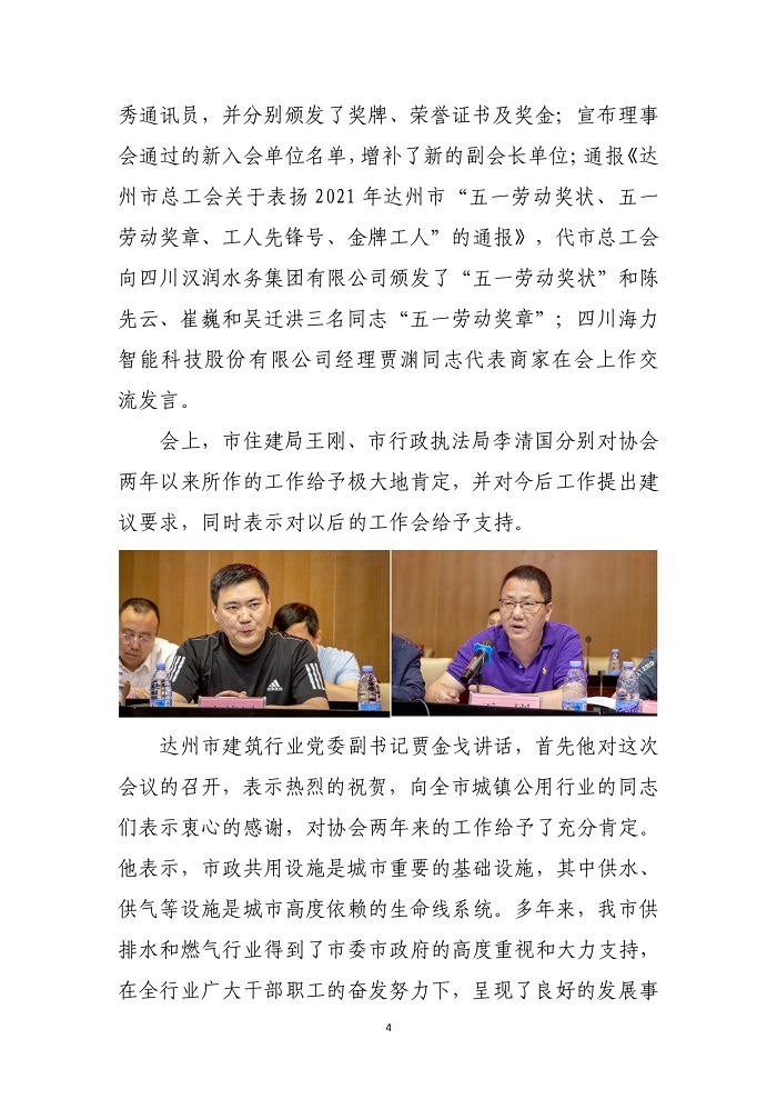 達(dá)州市城鎮(zhèn)公用行業(yè)協(xié)會2023年第四期簡報