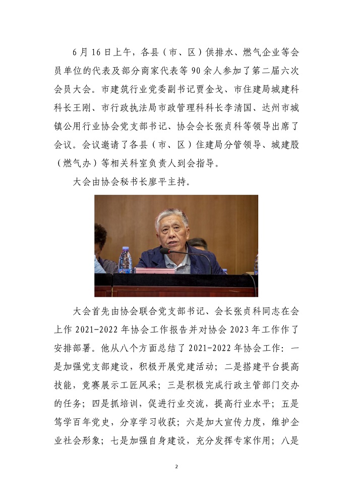 達(dá)州市城鎮(zhèn)公用行業(yè)協(xié)會2023年第五期簡報
