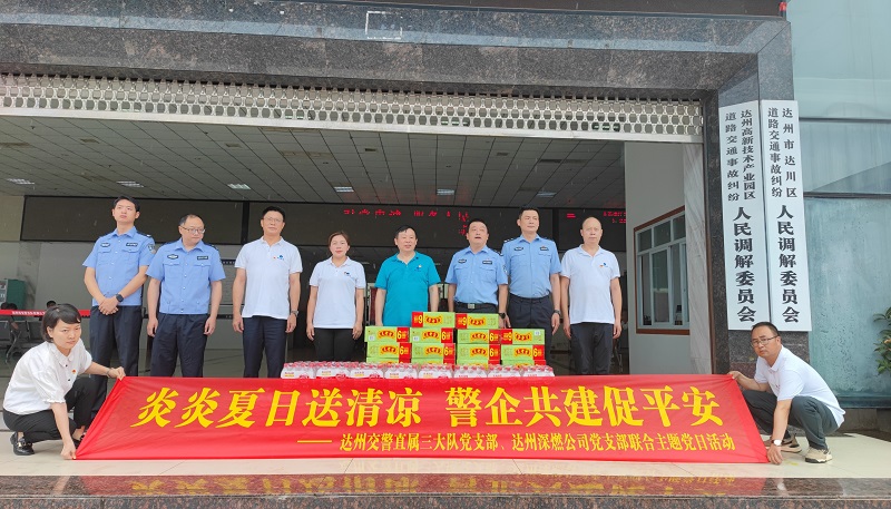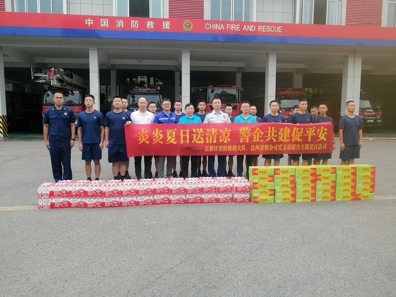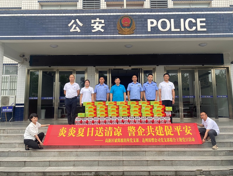 7月21日,達州深燃公司前往達州高新區(qū)斌郎派出所、達州高新區(qū)消防救援大隊、達州交警直屬三大隊開展“炎炎夏日送清涼,警企共建促平安”慶祝“八一”建軍節(jié)聯(lián)合主題黨日活動,為民警、消防員送去了礦泉水、涼茶等慰問物資,搭建“警企共建”平臺。