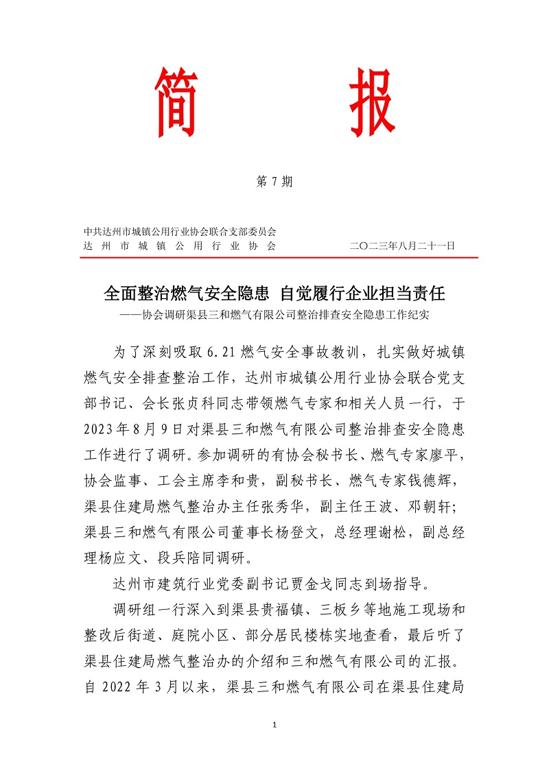 達(dá)州市城鎮(zhèn)公用行業(yè)協(xié)會(huì)2023年第七期簡報(bào)