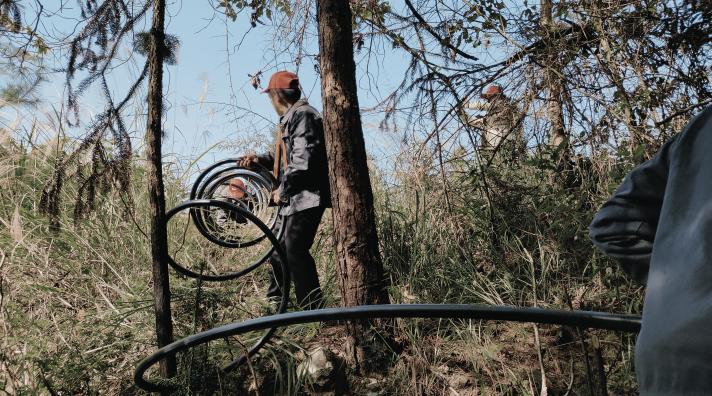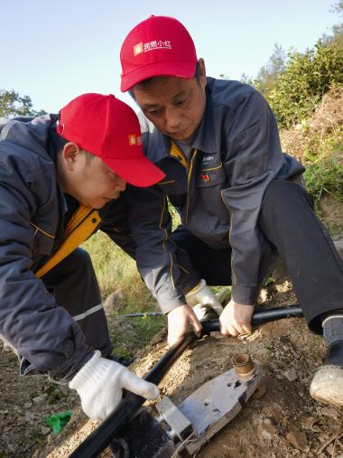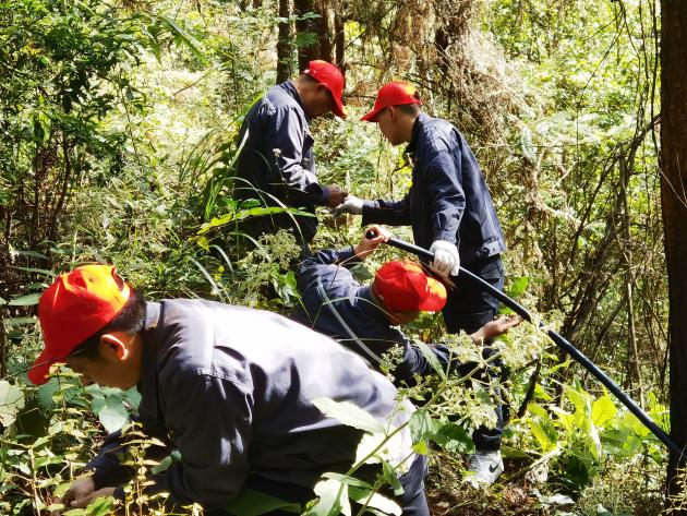 到了貓坪村,突擊隊員立馬投入到緊張地工作中。他們抬著笨重的設(shè)備、水管及配件,穿密林、跨溝壑,艱難地在茂密的森林中尋找被山洪損壞的水管。在施工現(xiàn)場,他們排除各種困難,認(rèn)真進(jìn)行供水管道焊接作業(yè),一片忙綠的施工場景成為貓坪村一道溫馨和美的畫面。