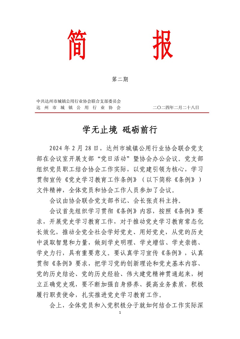 中共達州市城鎮(zhèn)公用行業(yè)協(xié)會聯(lián)合支部委員會2024年第二期簡報