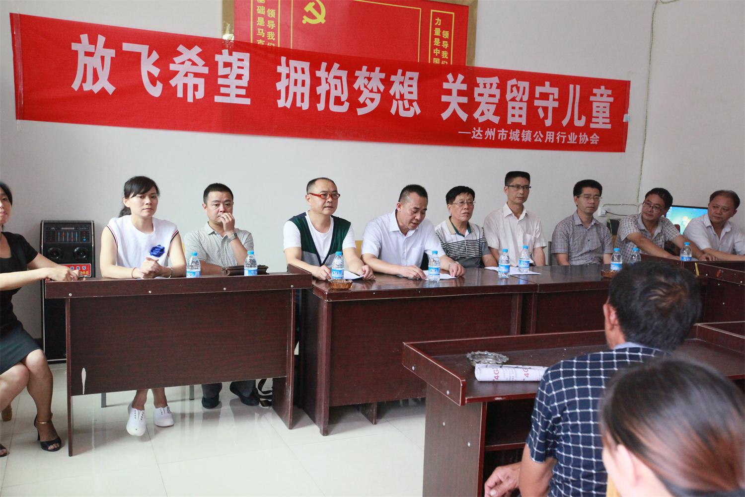 在這秋高氣爽的季節(jié)里,我們在這里舉行“放飛希望,關(guān)注留守兒童”愛心捐助活動,為南壩鎮(zhèn)雙柏社區(qū)33名家庭貧困留守兒童及貧困大學(xué)生提供幫助。這是達(dá)州市城鎮(zhèn)公用行業(yè)協(xié)會和企業(yè)單位共同攜手開展的一次公益活動。在此,我代表各企業(yè)單位謹(jǐn)向雙柏社區(qū)的留守兒童表示親切的慰問!