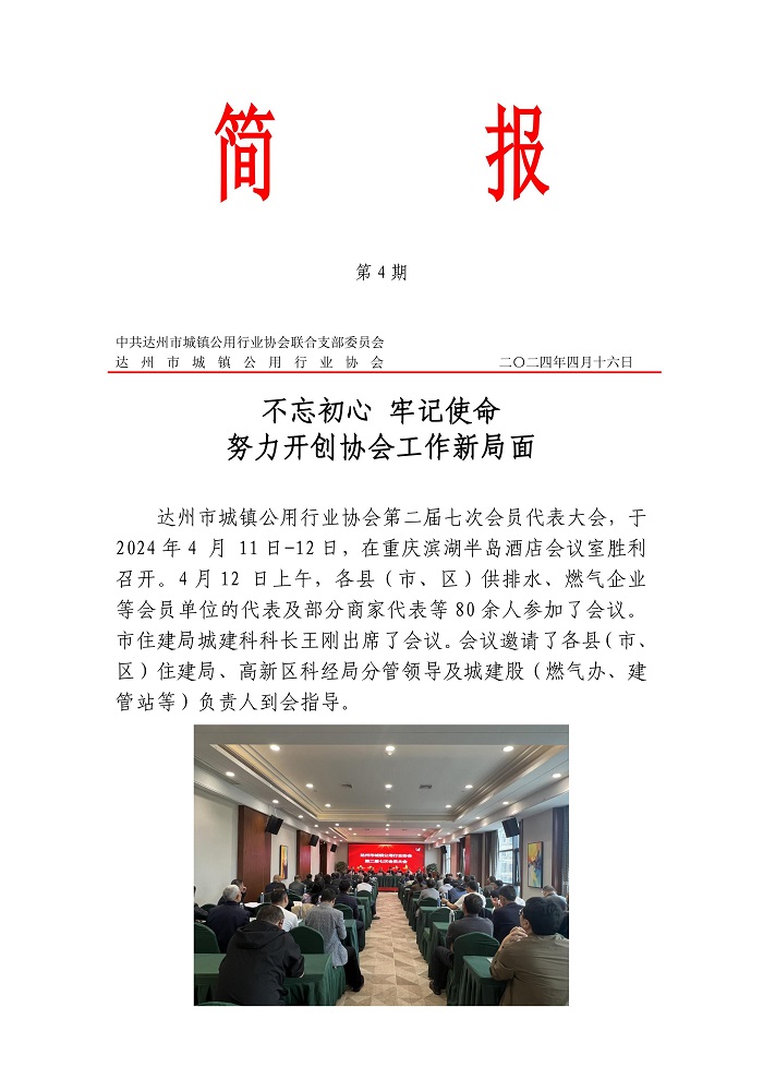 中共達(dá)州市城鎮(zhèn)公用行業(yè)協(xié)會(huì)聯(lián)合支部委員會(huì)2024年第四期簡(jiǎn)報(bào)