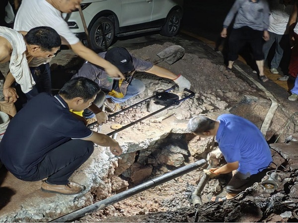 7月18日上午11時許,達(dá)州華潤燃?xì)庋矙z人員于寶對鳳凰山路段進(jìn)行日常檢漏排查中,發(fā)現(xiàn)創(chuàng)新文化藝術(shù)培訓(xùn)學(xué)校鳳凰山校區(qū)門口處有不明燃?xì)庑孤Q矙z人員第一時間進(jìn)行上報,并對該區(qū)域人員進(jìn)行疏散警戒。公司運(yùn)行管理部10余名搶險人員奔赴現(xiàn)場全力搶修,通過圖紙對比、激光檢漏儀、乙烷分析儀檢測、仔細(xì)排查,運(yùn)行管理部快速鎖定具體漏氣點(diǎn),并現(xiàn)場制定出該隱患整改方案。由于該漏氣位置與下水道相臨近,為防止衍生事故的發(fā)生,同時保障該區(qū)域老百姓的正常用氣,公司運(yùn)行管理部采取深夜作業(yè)經(jīng)過10小時的搶修,于次日早上7時順利消除隱患。