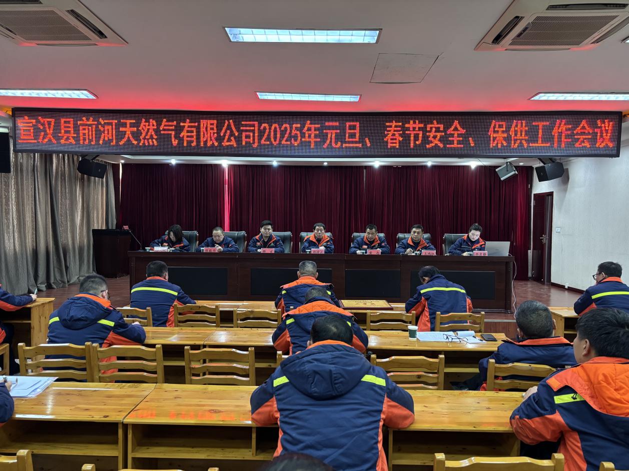 隆冬臘月之際,是用氣高峰期,保證用氣安全、穩(wěn)定順暢供氣是兩項(xiàng)艱巨的工作任務(wù)。根據(jù)縣住建局關(guān)于2025年元旦、春節(jié)保障安全、確保供氣的工作安排,2024年12月31日下午,宣漢縣前河天然氣有限公司組織全體職工召開了“2025年元旦、春節(jié)安全、保供工作會(huì)議”。