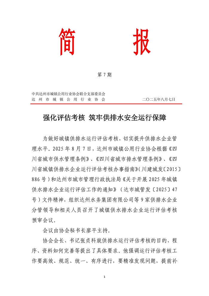 達(dá)州市城鎮(zhèn)公用行業(yè)協(xié)會(huì)2025年第七期簡(jiǎn)報(bào)