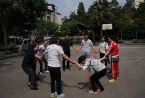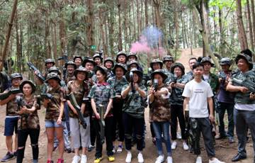 為更好地激發(fā)大家的潛能及團(tuán)隊(duì)榮譽(yù)感,培訓(xùn)教官隨機(jī)將參訓(xùn)人員分成3隊(duì),并分別以“亮劍隊(duì)”、“鋼七連”、“雪豹隊(duì)”為每隊(duì)命名并授予象征榮譽(yù)的軍旗,每隊(duì)隊(duì)員充分發(fā)揮團(tuán)隊(duì)智慧提出了團(tuán)隊(duì)口號與團(tuán)隊(duì)隊(duì)歌,并選出了隊(duì)伍指揮官-“連長”;顒(dòng)中,通過“配合夾球”、“挑戰(zhàn)20分”、“堅(jiān)持到底”、“默契傳情”、“真人CS野戰(zhàn)”等一個(gè)個(gè)精心設(shè)計(jì)的培訓(xùn)項(xiàng)目考驗(yàn)著大家的智慧、耐力與團(tuán)隊(duì)協(xié)作,培訓(xùn)雖然有苦有累,但大家通過堅(jiān)持與拼搏收獲更多的是微笑與感悟。