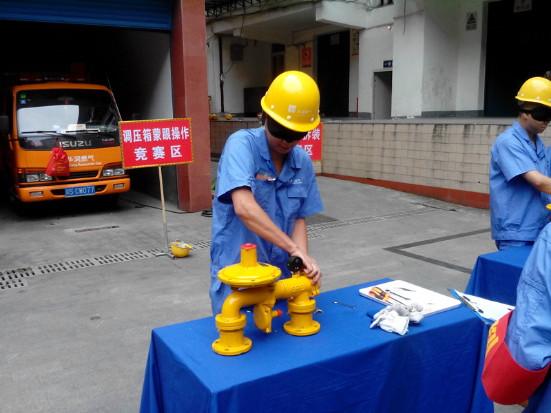 為全面提高燃?xì)夤芫W(wǎng)設(shè)施設(shè)備搶維修人員的崗位技能和業(yè)務(wù)素質(zhì),5月25日,達(dá)州華潤燃?xì)庥邢夼e行了一場別開生面的燃?xì)庹{(diào)壓箱蒙眼拆裝競賽。