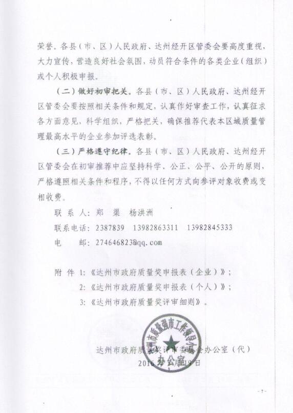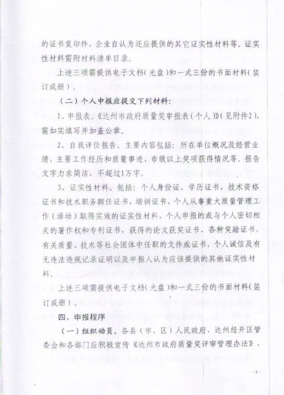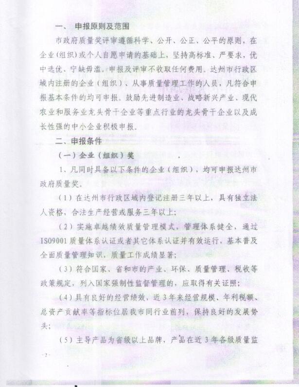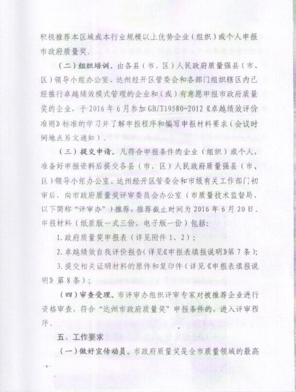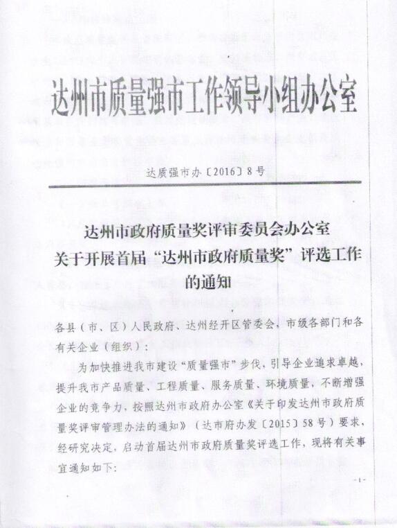 達(dá)州市政府質(zhì)量獎(jiǎng)評審委員會辦公室關(guān)于開展首屆“達(dá)州市政府質(zhì)量獎(jiǎng)”評選工作的通知
