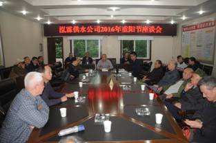 泓霖供水公司召開2016年重陽節(jié)座談會。步步登高開視野,年年重九勝春光。為喜迎2016年重陽佳節(jié),10月9日,泓霖供水公司組織公司退休老領(lǐng)導、老職工20余人在公司二樓會議室召開了重陽節(jié)座談會,送上公司對各位退休老同志們的節(jié)日祝福與問候。
