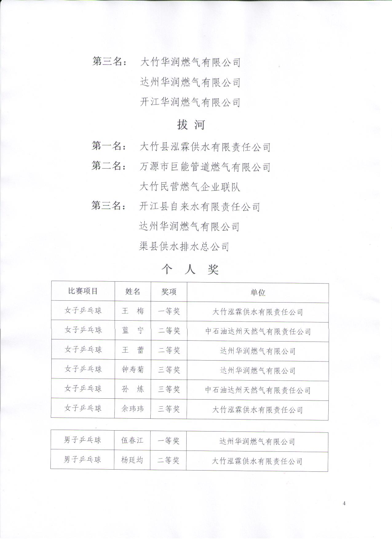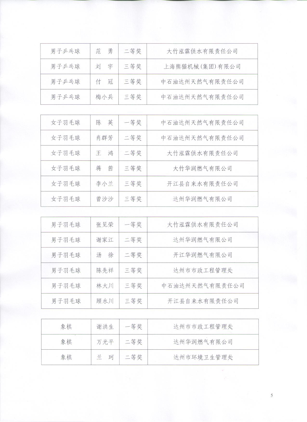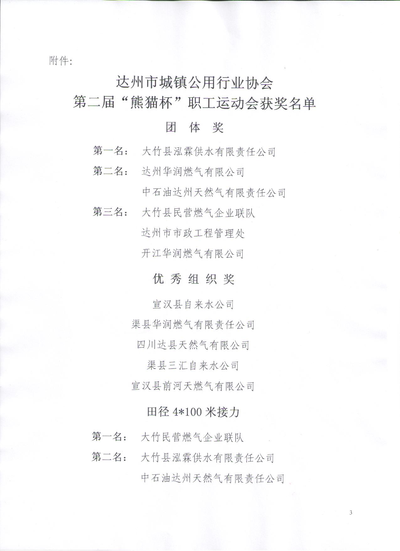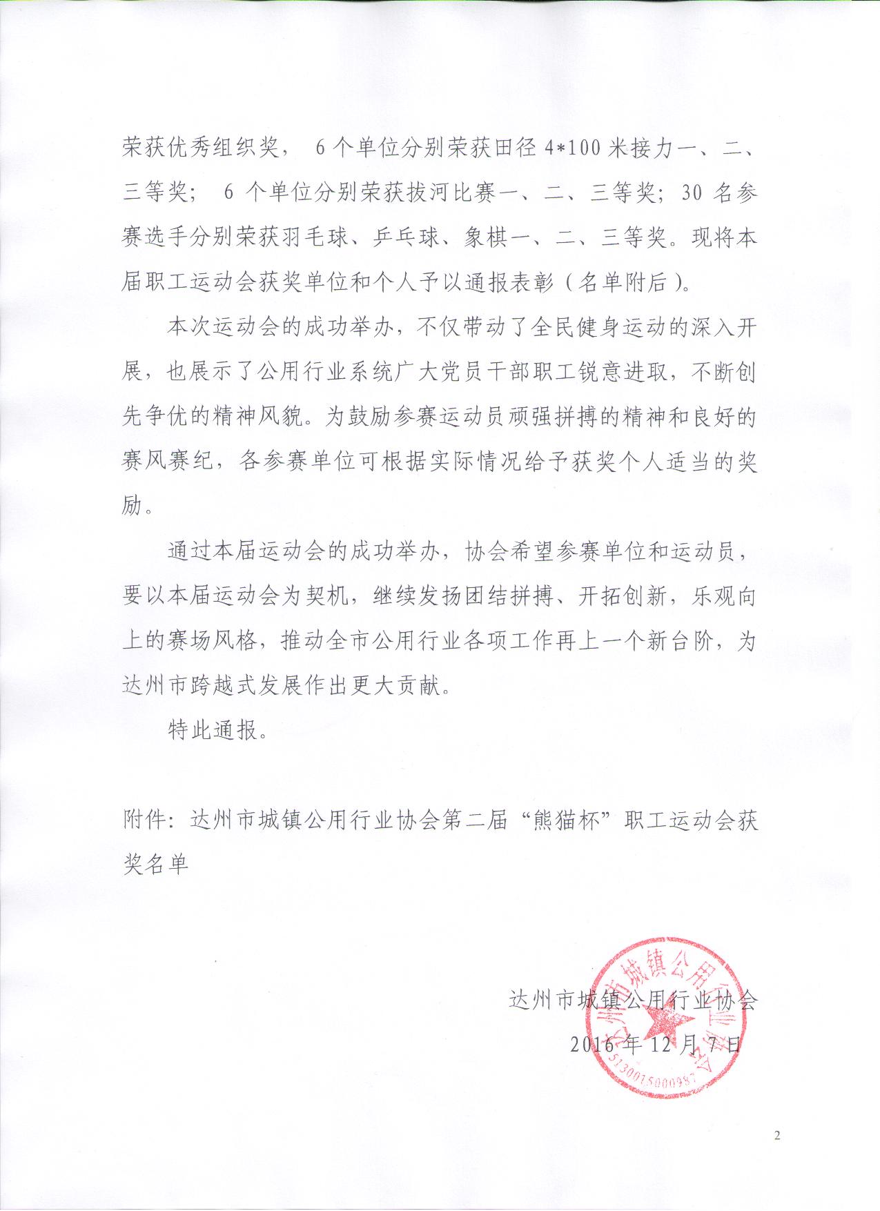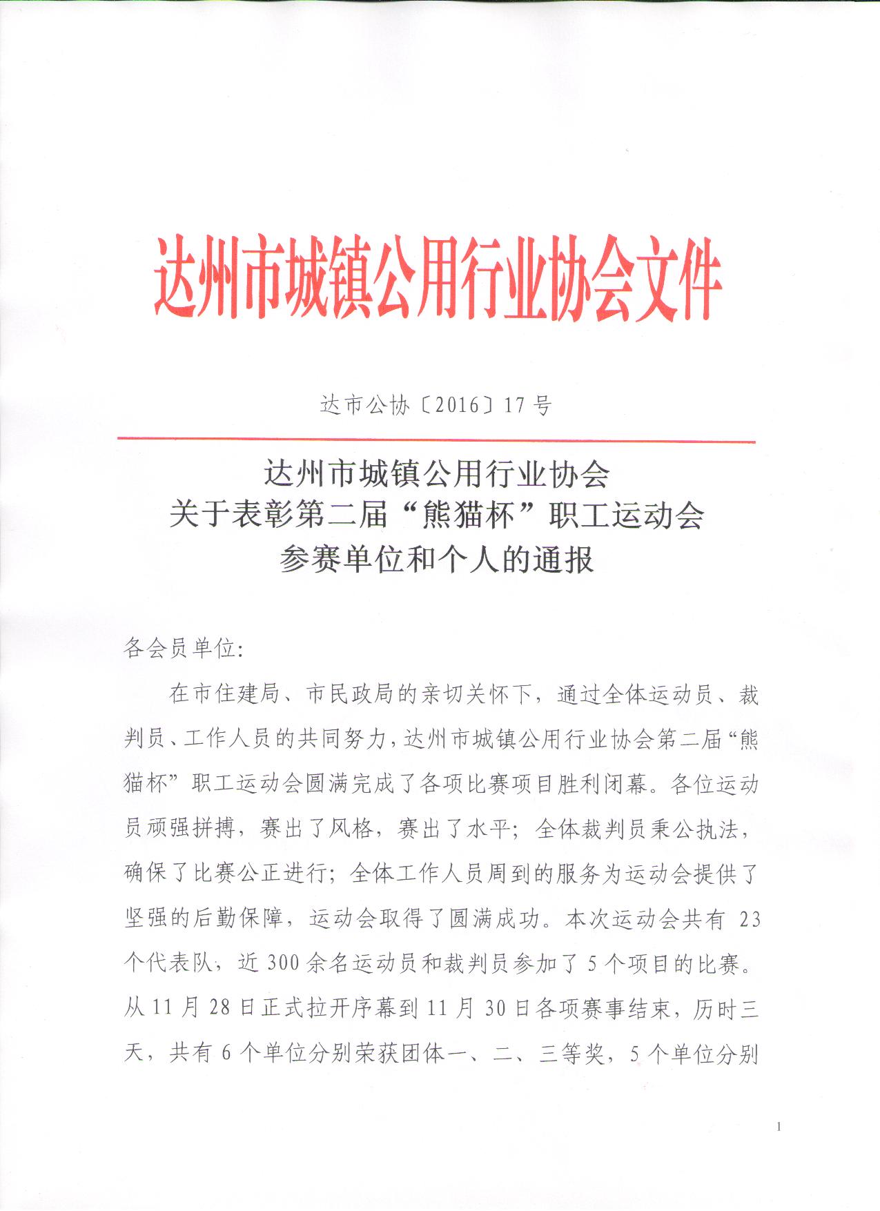 達州市城鎮(zhèn)公用行業(yè)協(xié)會關(guān)于表彰第二屆“熊貓杯”職工運動會參賽單位和個人的通報