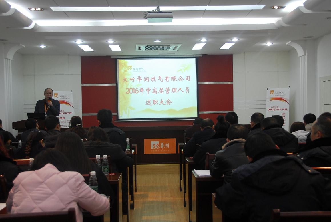 為全面總結、分析2016年度的工作,找出存在的不足與差距,進一步提高經(jīng)理人的管理水平,2017年1月5日,大竹華潤燃氣有限公司召開 2016年度中高層管理人員述職大會,中高層管理人員、班組長及員工代表共計49人參加。