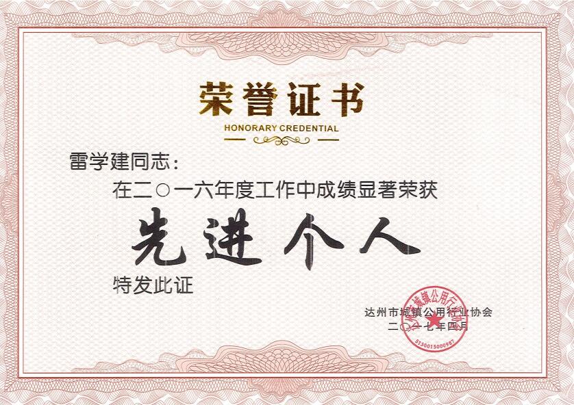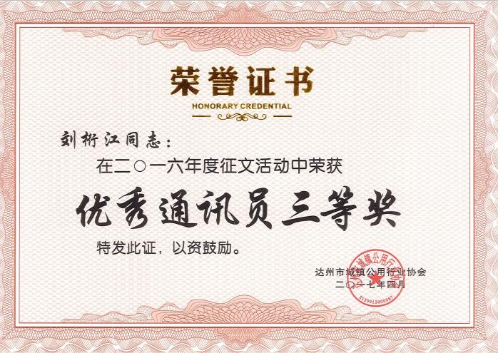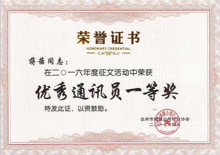 大竹公司喜獲達州市城鎮(zhèn)公用行業(yè)“優(yōu)秀企業(yè)”榮譽稱號