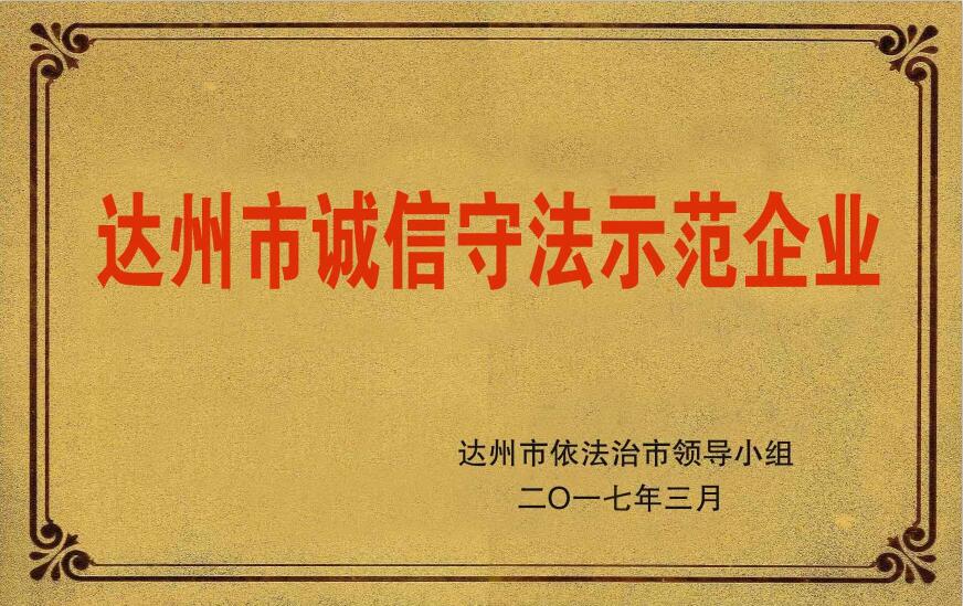 三、喜獲達(dá)州市誠信守法示范企業(yè)榮譽(yù)稱號(hào)