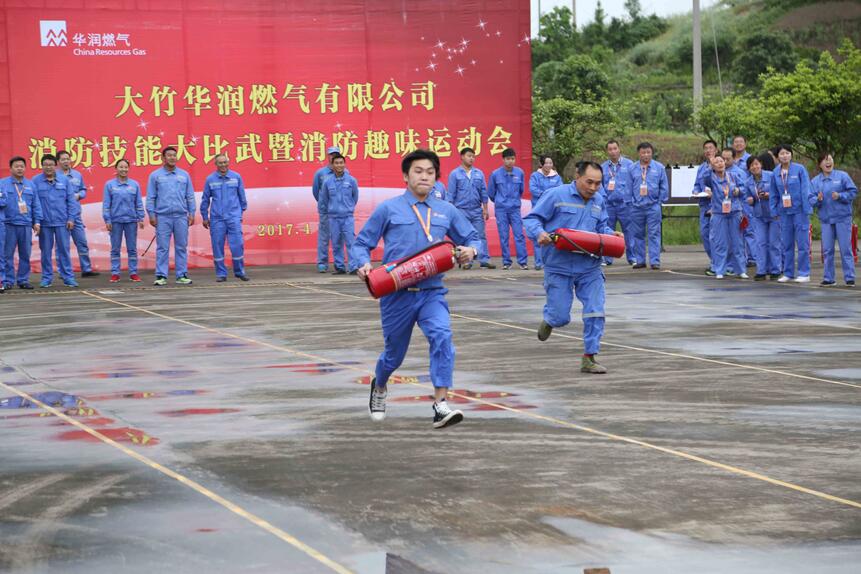 為加強(qiáng)員工的安全素質(zhì)教育,強(qiáng)化員工的消防安全意識(shí),進(jìn)一步提高火災(zāi)應(yīng)急處置能力,切實(shí)保證公司的消防安全,4月20日下午,大竹華潤(rùn)燃?xì)庥邢薰镜谝粚孟兰寄艽蟊任漪呦廊の哆\(yùn)動(dòng)會(huì)在經(jīng)開(kāi)區(qū)儲(chǔ)配站內(nèi)成功舉行?h消防中隊(duì)、縣級(jí)相關(guān)部門(mén)領(lǐng)導(dǎo)及公司經(jīng)營(yíng)管理團(tuán)隊(duì)成員親臨現(xiàn)場(chǎng)觀摩,大竹華潤(rùn)燃?xì)庥邢薰靖鞑渴医M建了5支參賽隊(duì)(共計(jì)80余人)參加了本次運(yùn)動(dòng)會(huì)。