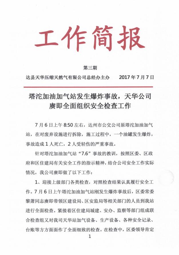 達(dá)縣天華壓縮天然氣有限公司簡報2017年第三期