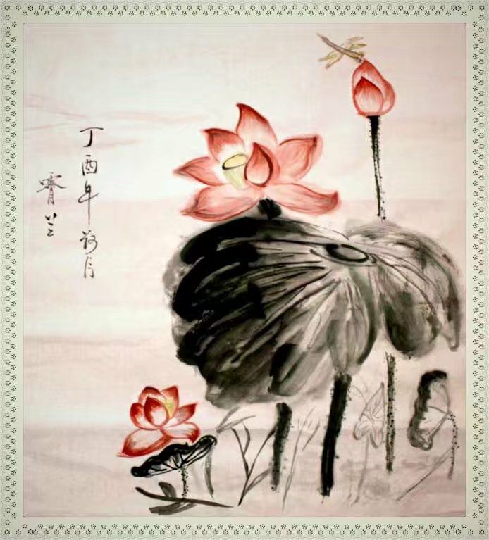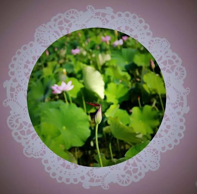 荷。蜻蜓、愛戀。點(diǎn)點(diǎn)吻、輕輕撫。仙蕾初綻、振翅翩躚。清雅貴芳華、活潑芭蕾舞。晨醒共沐朝露、夕陽醉享癡纏。蓮夢悠然詩畫境、蜓趣伶俐情并肩。