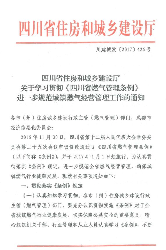四川省住房和城鄉(xiāng)建設廳關于學習貫徹《四川省燃氣管理條例》進一步規(guī)范城鎮(zhèn)燃氣經(jīng)營管理工作的通知
