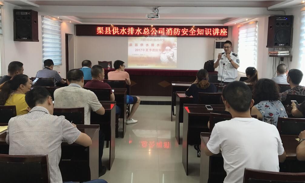 為加強安全生產(chǎn)工作,強化安全意識和提升管理水平,8月17日上午,渠縣供水排水總公司邀請了危化品和消防安全方面的專家來司舉辦;饭芾砗拖腊踩R講座。